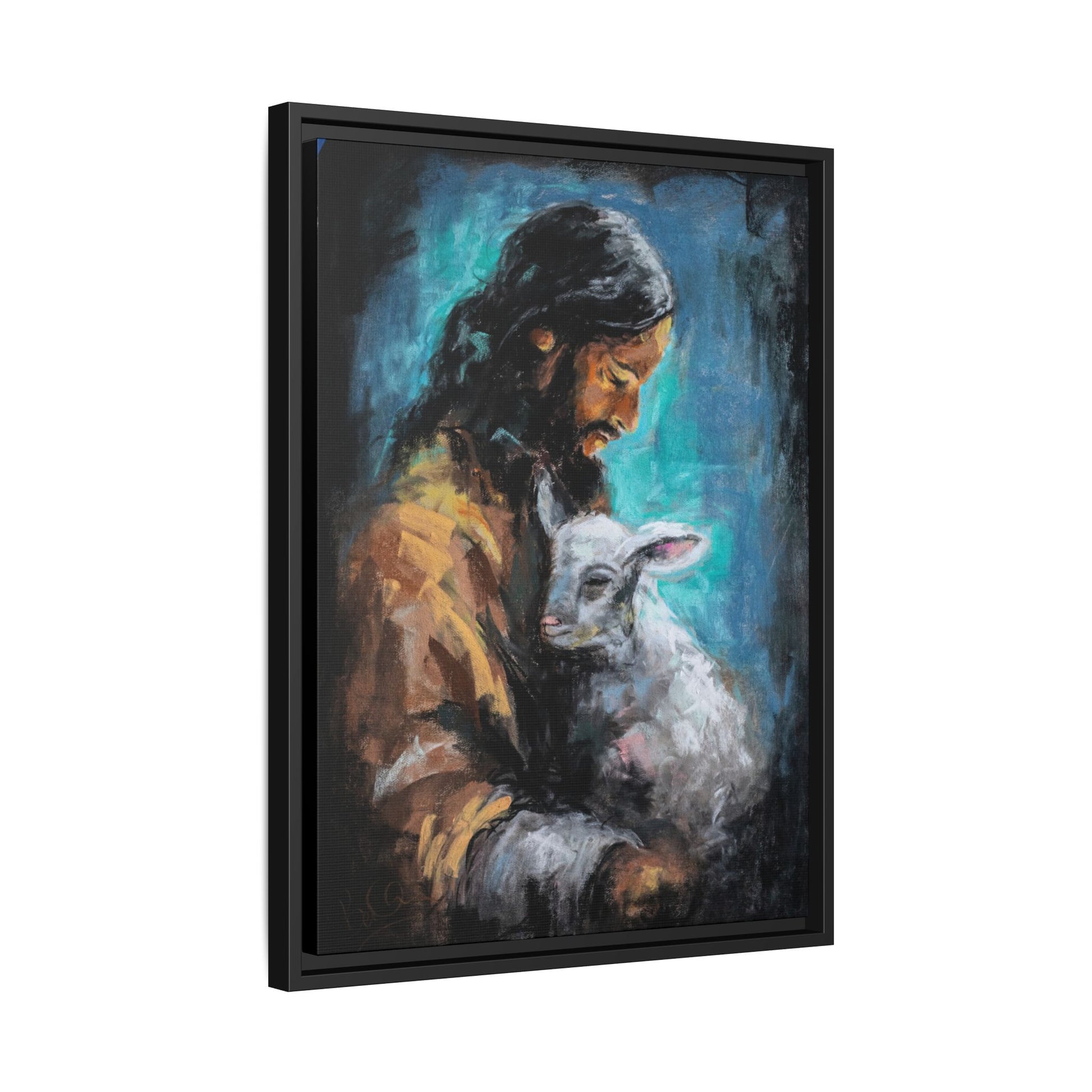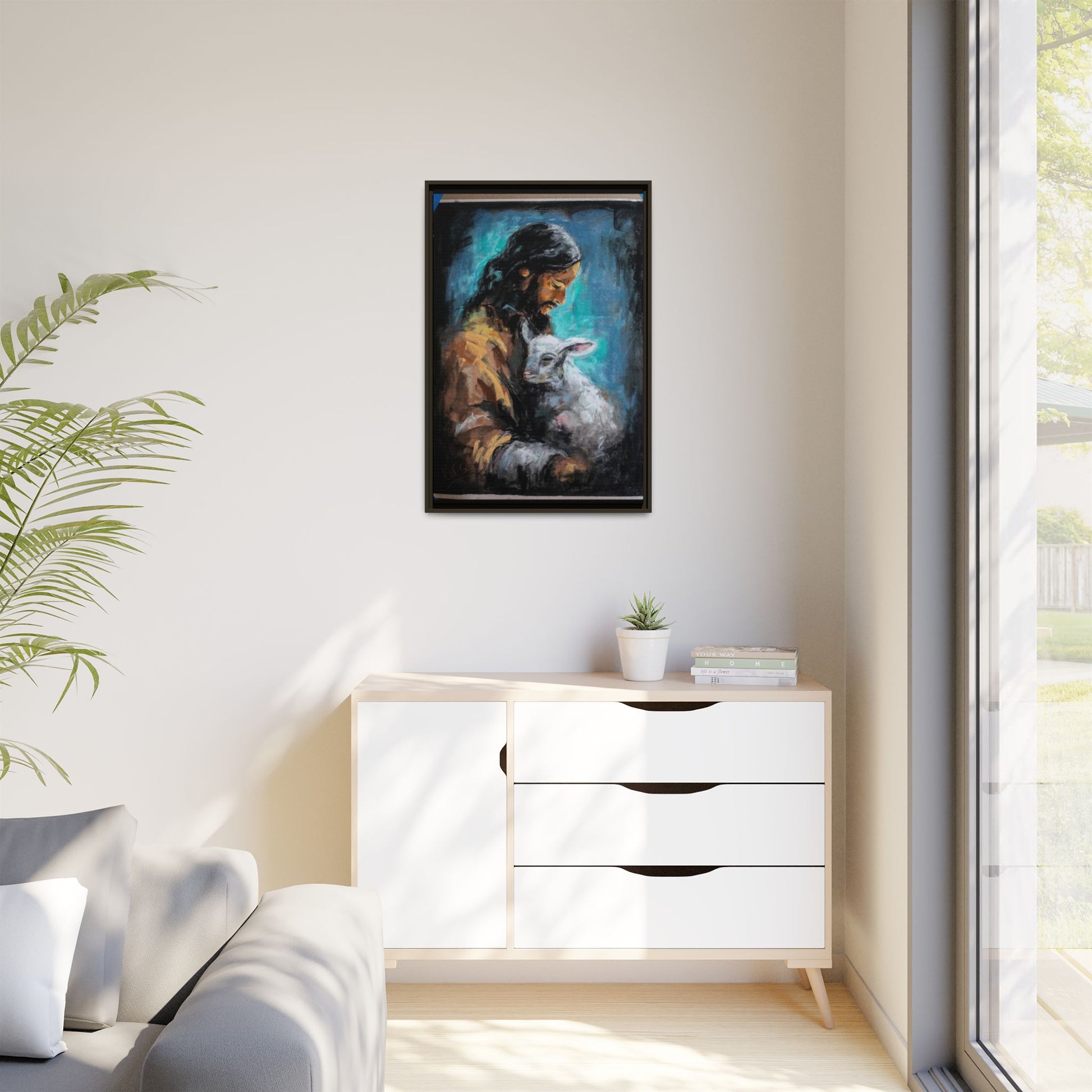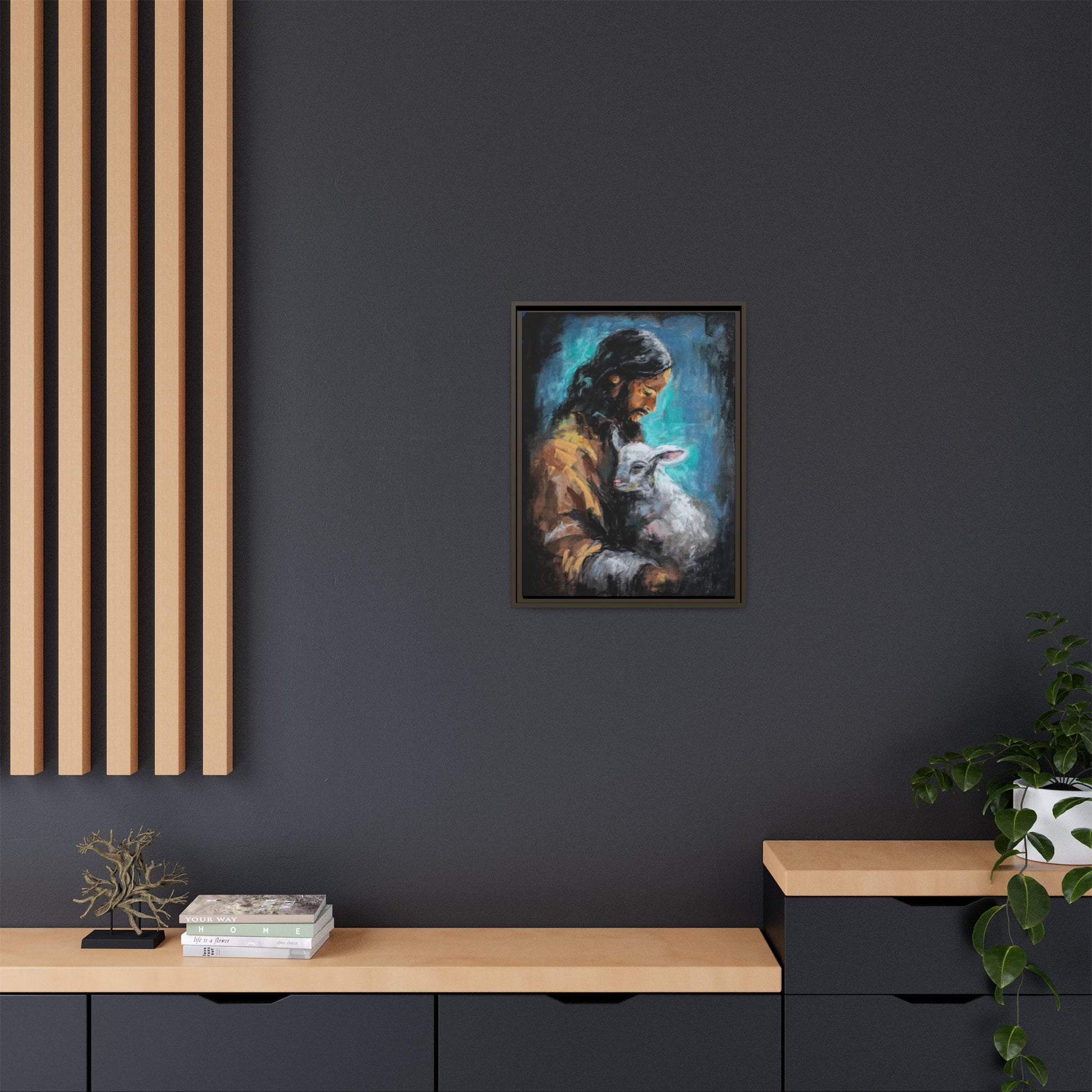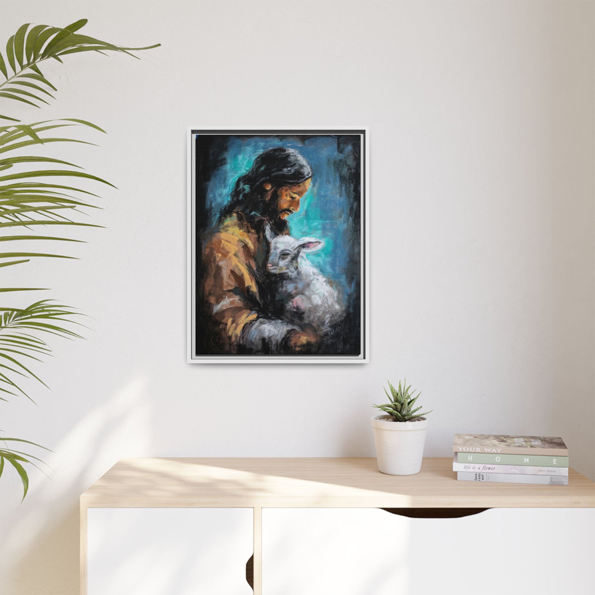 A unique and vibrant canvas print featuring Jesus holding a lamb, perfect for adding a touch of faith and warmth to your home decor. Ideal for religious individuals looking to enhance their living space with meaningful art. Relevant for Christmas, Easter, and everyday spiritual inspiration.