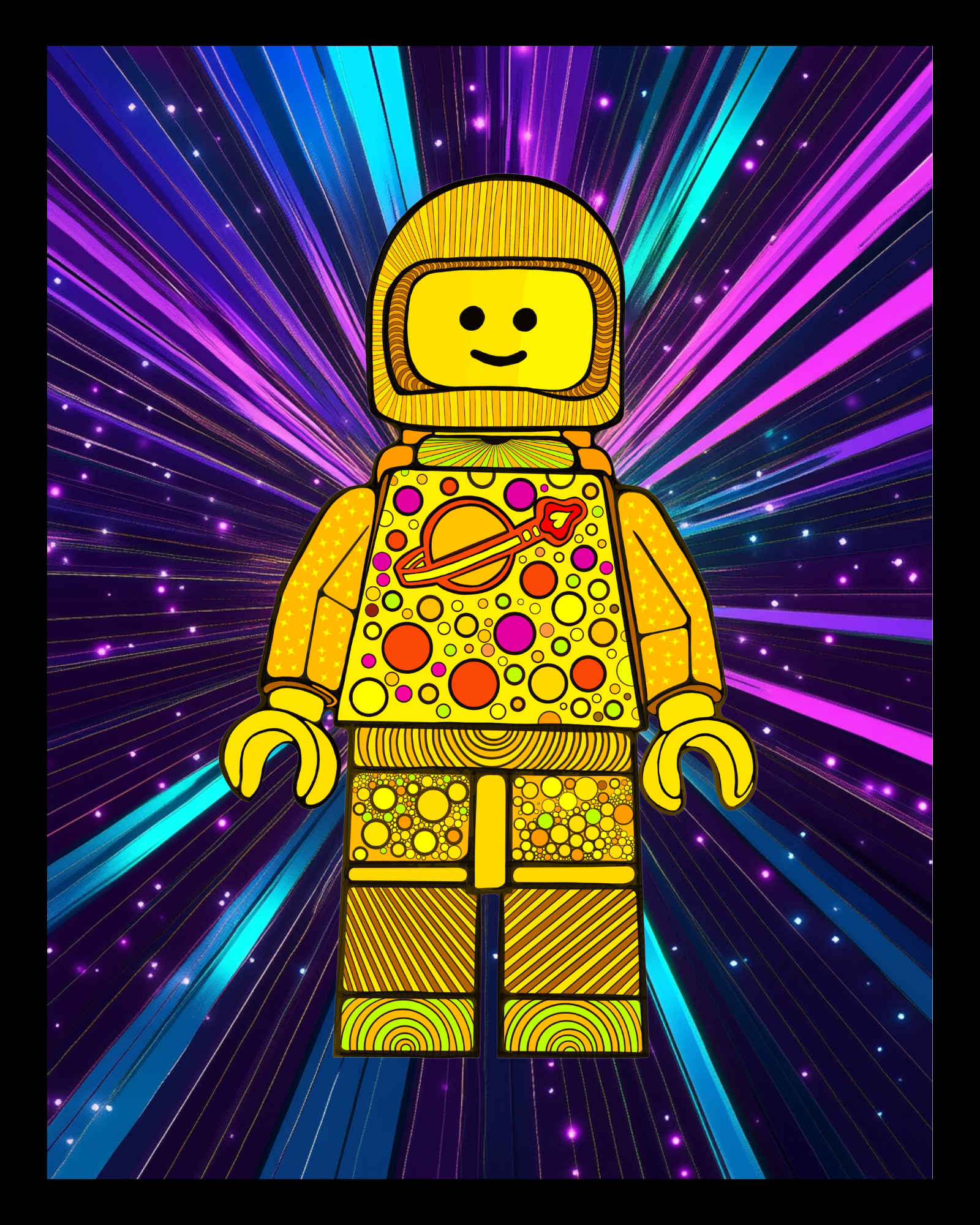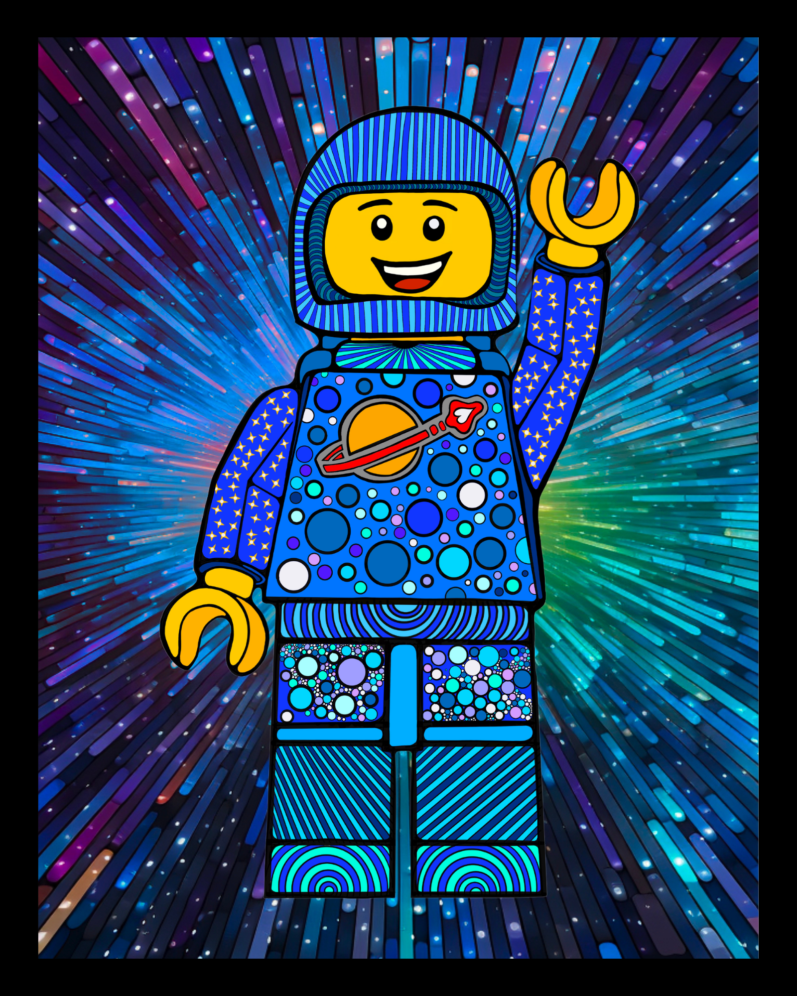 This playful fine art print brings together my love for LEGO and abstract creativity. Each minifigure is packed with intricate doodles, patterns, and hidden hearts—hand-drawn on my iPad using Procreate. I started this piece the same way I start many of my doodle projects—on a plane, in a meeting, or while waiting at the doctor’s office—just creating for the fun of it.